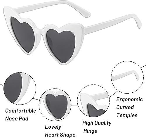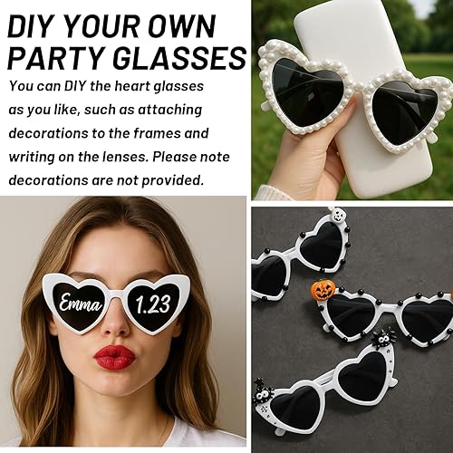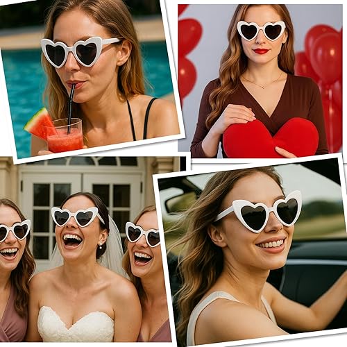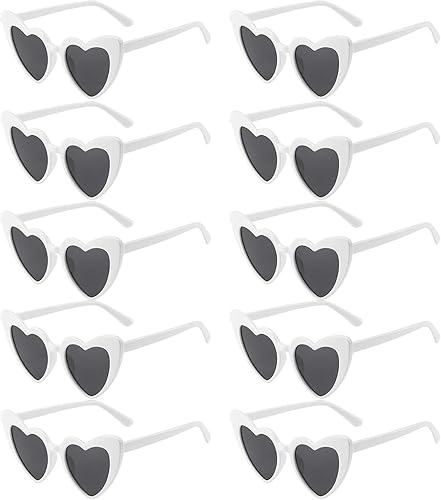 JazRvr Lot de 10 paires de lunettes de soleil en forme de cœur blanc pour fête, mariage, carnaval, activités de plein air, accessoire de mode pour femmes et enfants