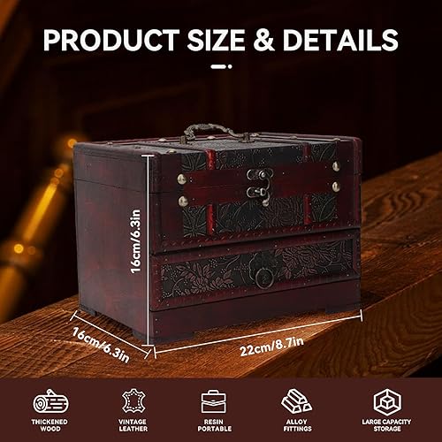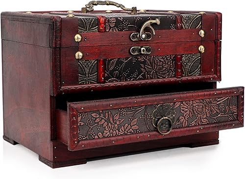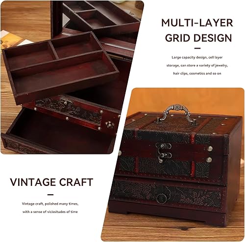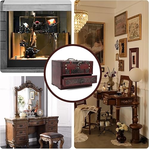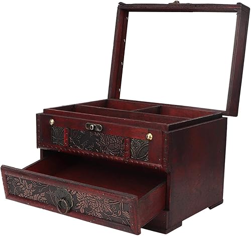 Boîte à Bijoux en Bois, boîte de rangement en bois, boite a bijoux femme,boite bijoux,Boite Rangement Vintage Organisateur de Bijoux Coffret à Bijoux avec Tiroirs et Miroir pour Bague, Collier,Montre