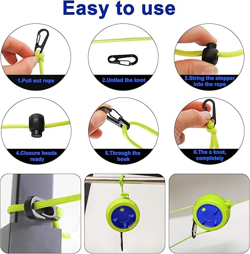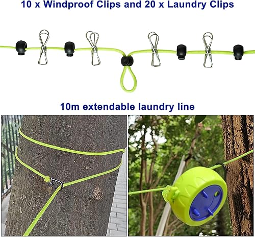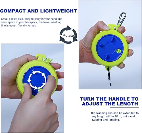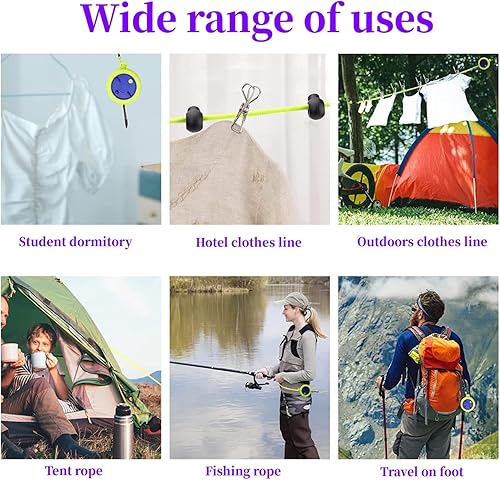 Lot de corde à linge, 10 m de portable, anti-enroulement, extensible, pour séchoir à linge, salle de bain, camping en plein air, extérieur, jardin ou voyage