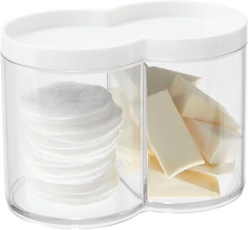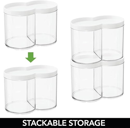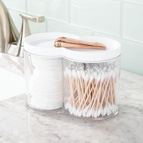 mDesign boite de rangement plastique – utilisable comme boite à coton et distributeur coton tige – empilable et avec couvercle pratique – transparent et blanc