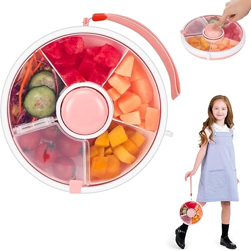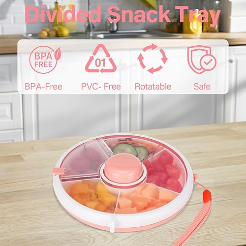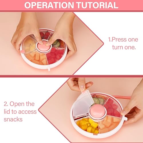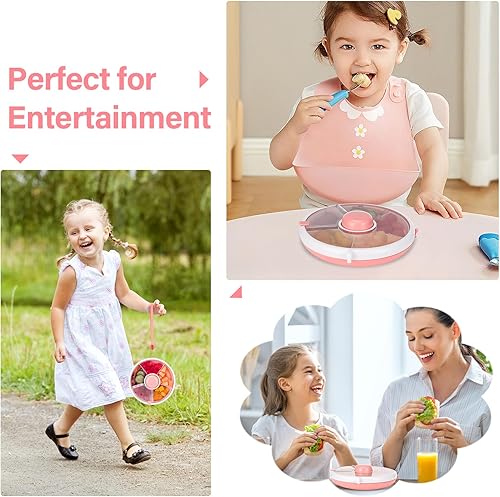 Farerkass Spinner à Snack Rotatif, Boîte à Snack pour Enfants, Boite à Collation, Boîte Spinner à Snack avec 5 Compartiments, Idéal pour les Tout-Petits et les Enfants pour Bonbons, Noix (Rose)