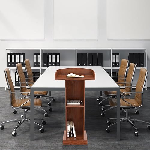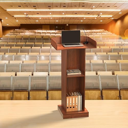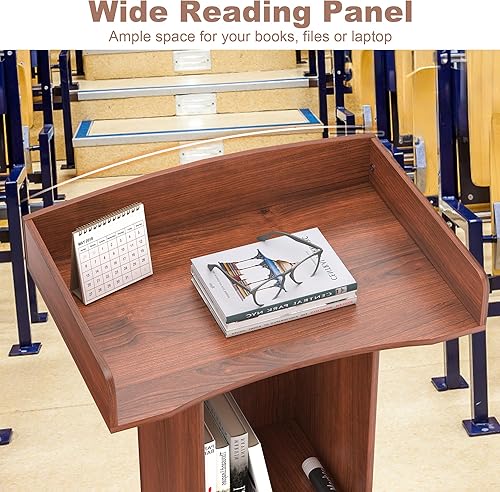 lesolar Podium debout en bois, pupitre d'église debout avec large surface de lecture et étagère de rangement, support de pupitre de salle de classe blanc, bureau de réception client