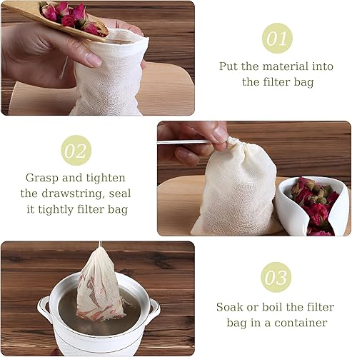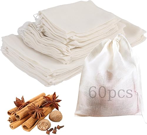 JINXIAN 60 Pièces Sachet The a Remplir Sacs Sachet de Thé Réutilisable Sac Tissu Cordon 3 Tailles Différentes Pochon Tissu pour Infuseur Thé Café éPices