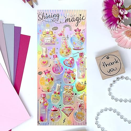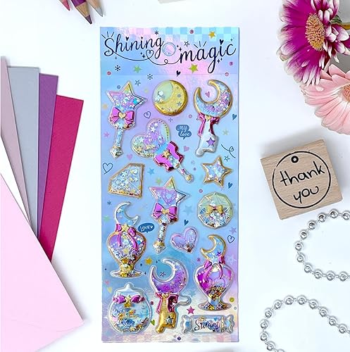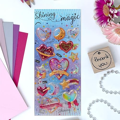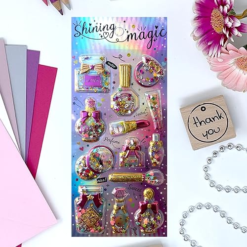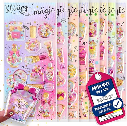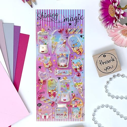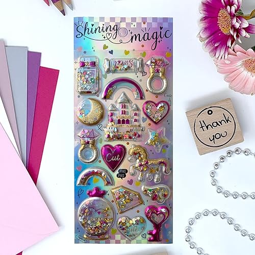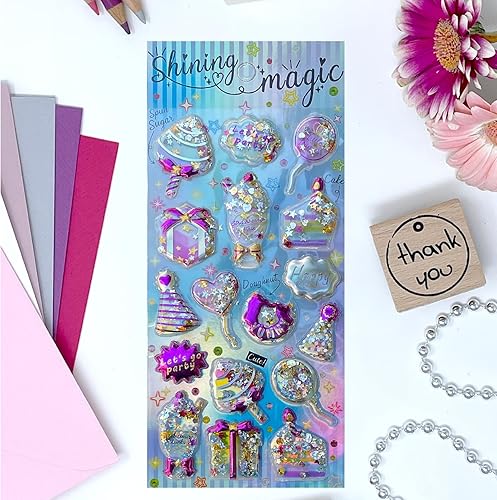 !! Jolly Stickers® Lot de 3 autocollants à secouer remplis de flocons de paillettes pour cadeaux d'anniversaire autocollants Shake Licorne Collectionner Scrapbook Livre d'autocollants Album
