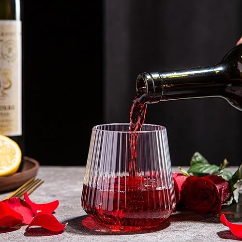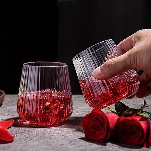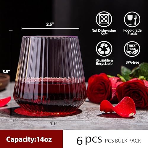Lot de 6 verres à vin en plastique incassables, sans pied, en plastique nervuré, pour origami, réutilisable, intérieur et extérieur, pour pique-nique, camping, whisky, cocktail, 414 ml