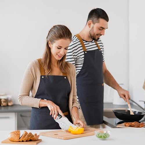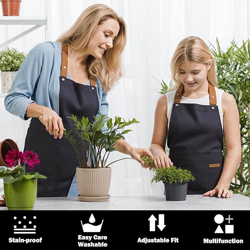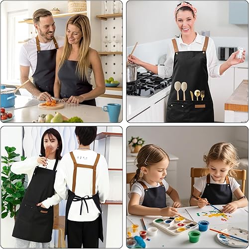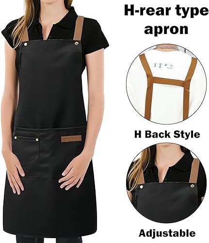 Imperméable Tablier Cuisine à Grandes Poches Divisées Pour Homme tablier Noir Avec Sangle de Cou à Pression en Métal Tablier de Gril Pour Femme Adapté à la Cuisine Créations de Jardinage
