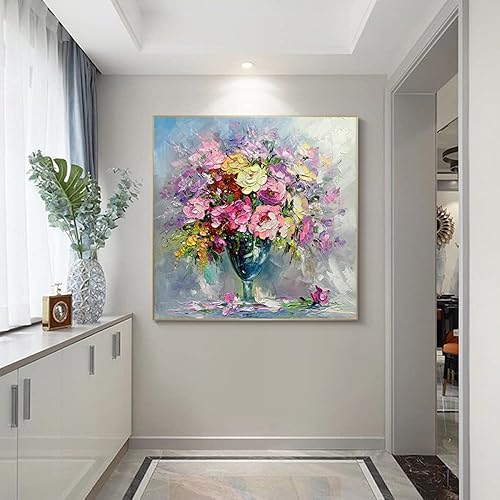AERK Tableau Peinture Huile sur Toile Grand Format,Original Peint À La Main Cool Peintures Moderne Abstrait Rose Fleur sans Cadre Texturé Oeuvre Extra Large Mur Art pour Salon Chambre Décorations
