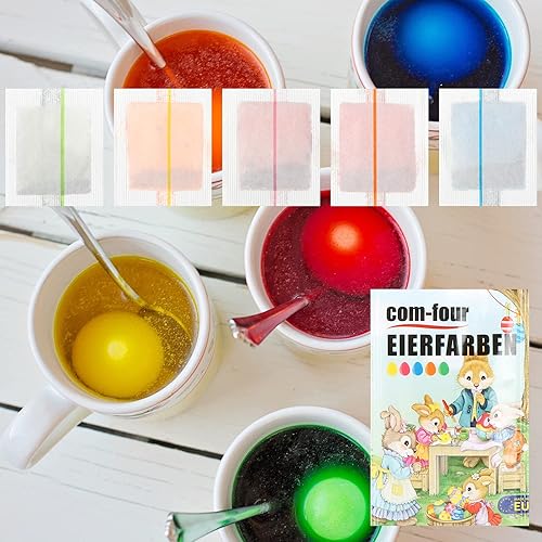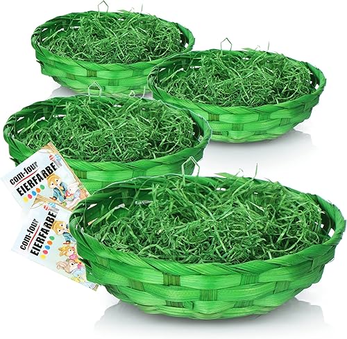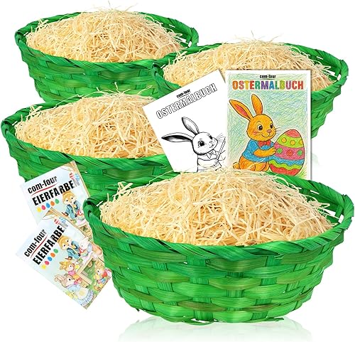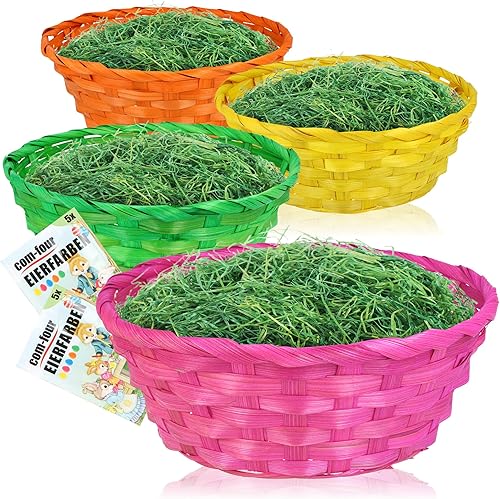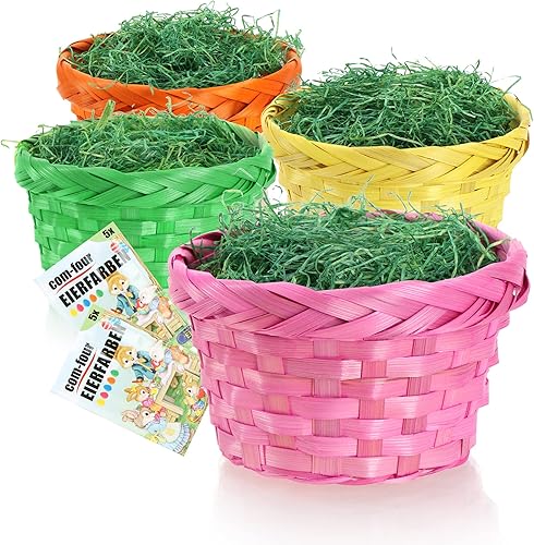 COM-FOUR® Décoration de Pâques et coffret cadeau - Paniers colorés en raphia, herbe de Pâques verte, couleurs d'œufs - Panier de Pâques DIY - Set de bricolage de Pâques (Ensemble 3 - coloré)