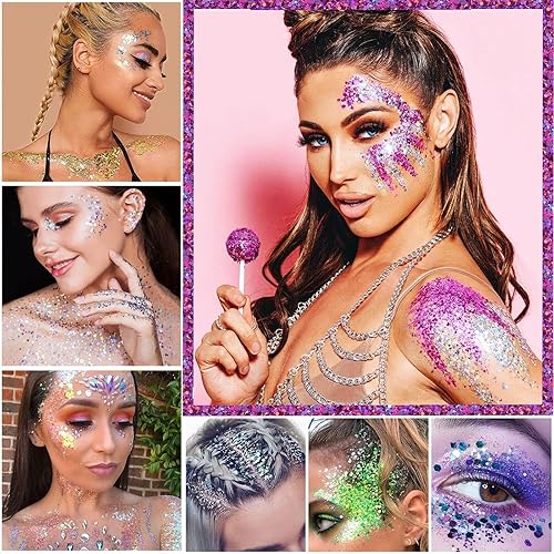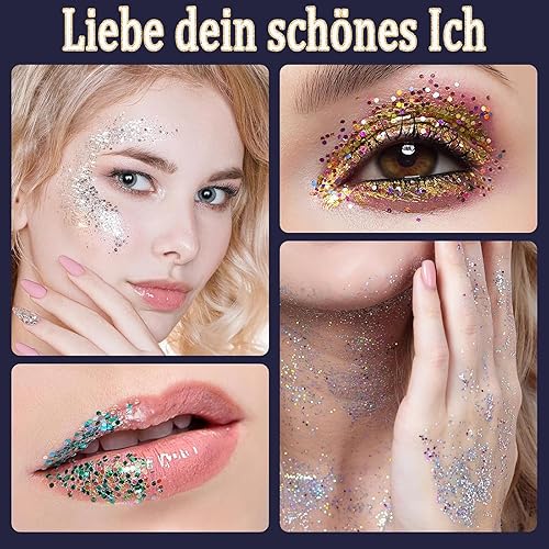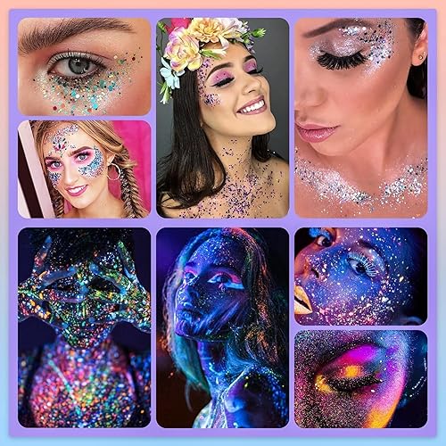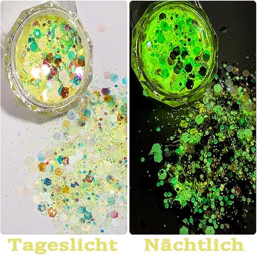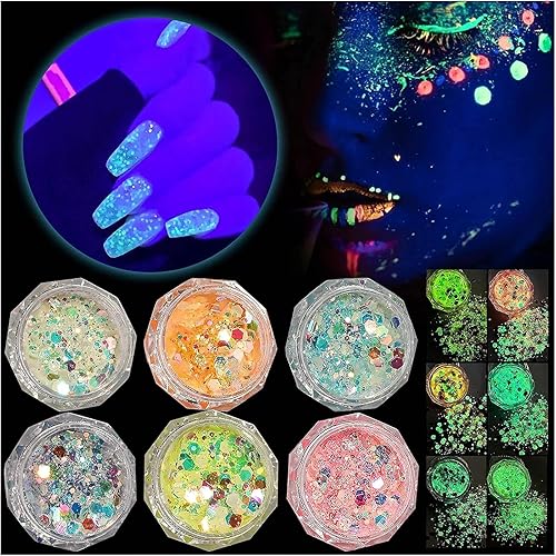 Visage à paillettes, 6 couleurs fluorescentes brillantes dans le noir, maquillage du visage, visage de festival, poudre pailletée, 45 g, pour le bricolage, pour le maquillage, les cartes, le nail art