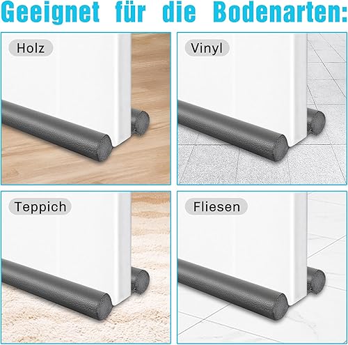 Caca 3 pièces Boudin de Porte Double Isolant 96 cm - Bas de Porte Anti Froid et Anti Bruit Lavable - Isolation Porte d'Entrée, Dessous de Porte Boudin Porte d'Entrée Anti Courant d'air, Gris