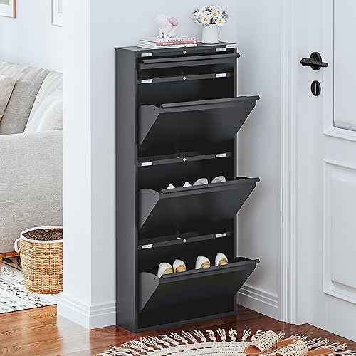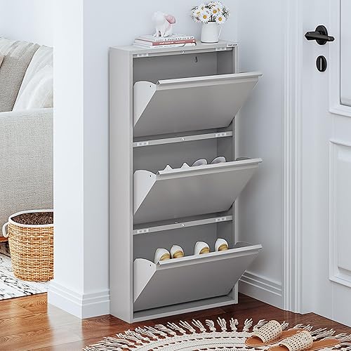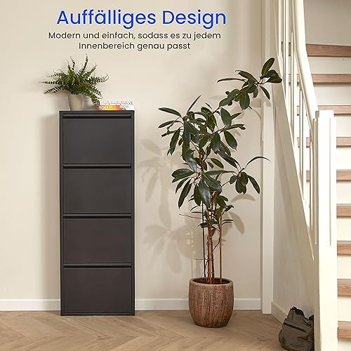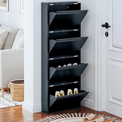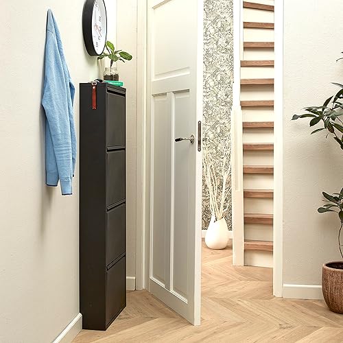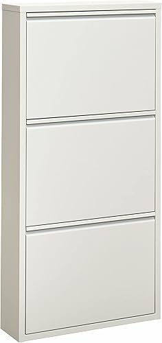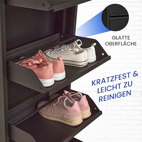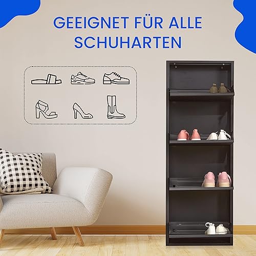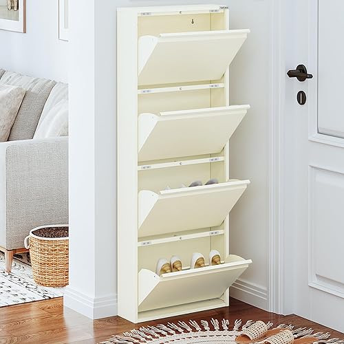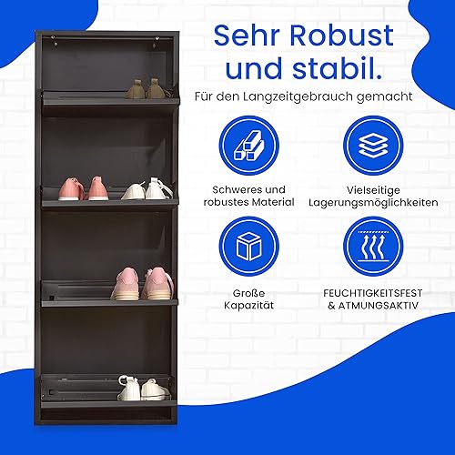 VEEHAUS Étagère à chaussures, étroite, haute, armoire à chaussures, avec couvercle magnétique, montage mural, en métal (blanc, 4 abattants)
