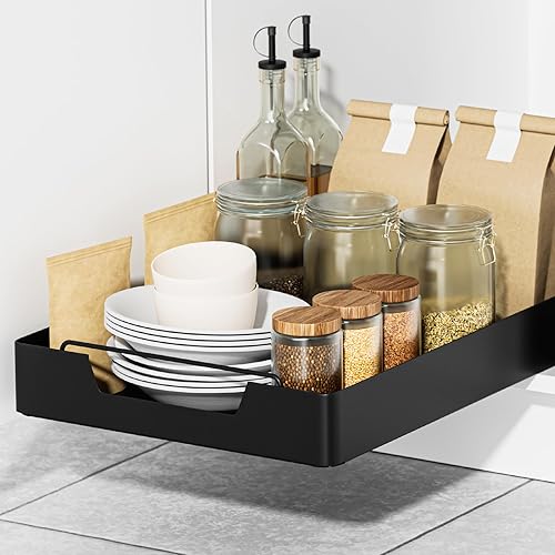 KTRIO Organiseur de placard coulissant, étagères de rangement coulissantes pour placard de cuisine (30,5 cm de large x 42,5 cm de profondeur x 7,5 cm de hauteur), sans perçage ni clouage, tiroir
