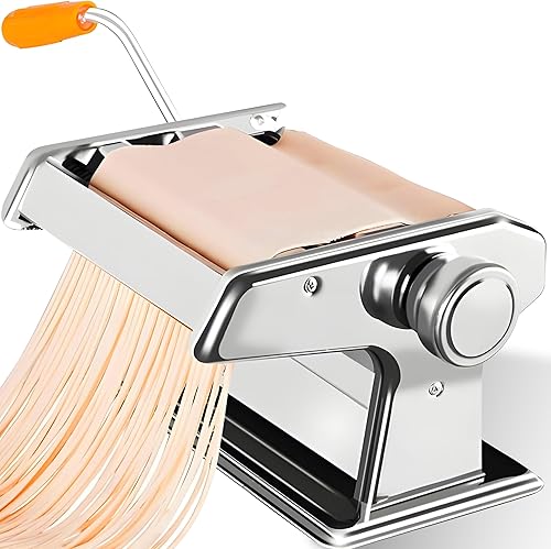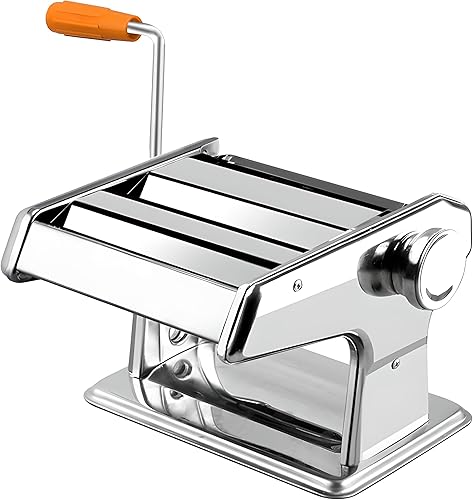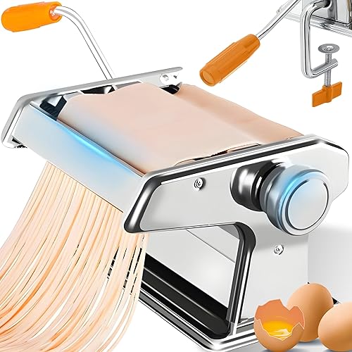 Retoo Machine à pâtes manuelle en acier inoxydable - Machine à pâtes pour spaghetti, lasagnes, tagliatelles, avec pince de table - Machine à découper les pâtes - Argenté