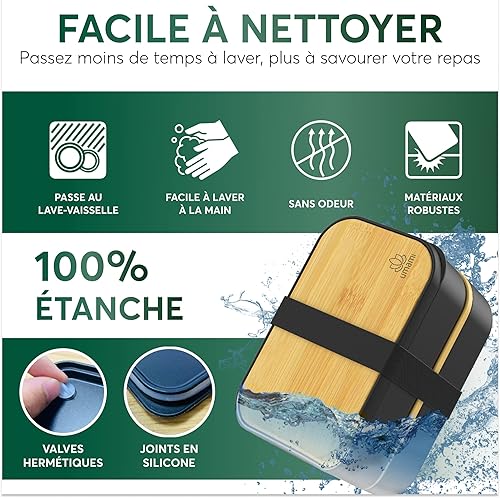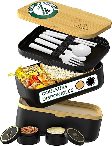 Umami Bento Lunch Box, 2 Pots à Sauce & Couverts en Bois Inclus, Lunchbox Micro-Ondable, Boîte à lunch Adulte, Boîte Repas Compartimentée, Boîte Bento Lunch Box, Bento Box