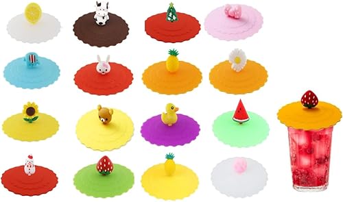 Anlising 16PCS Couvercle de Tasse en Silicone, Anti-Poussière Couvercle de Mug, Couvercle de Tasse en Silicone Réutilisables, Mug Couvercle Anti Poussière Cup Lid, pour Tasses à Café,Verres à Vin