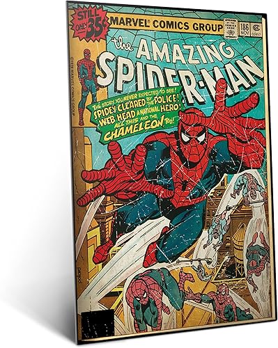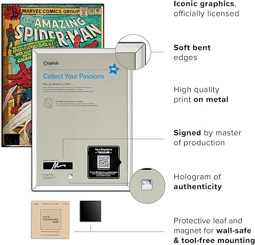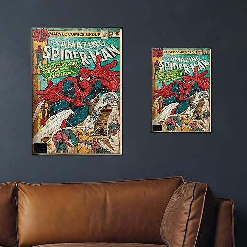 Displate Officiel Marvel Poster Métallique Fixation Magnétique Licence Officielle Image Affiche de Haute Qualité Spider Man Retro - Amazing Spider-Man 32x45cm - Matt