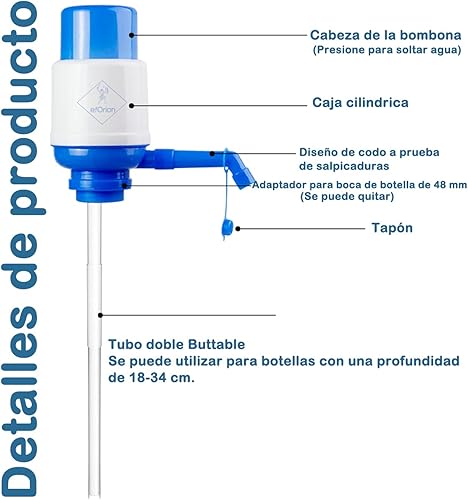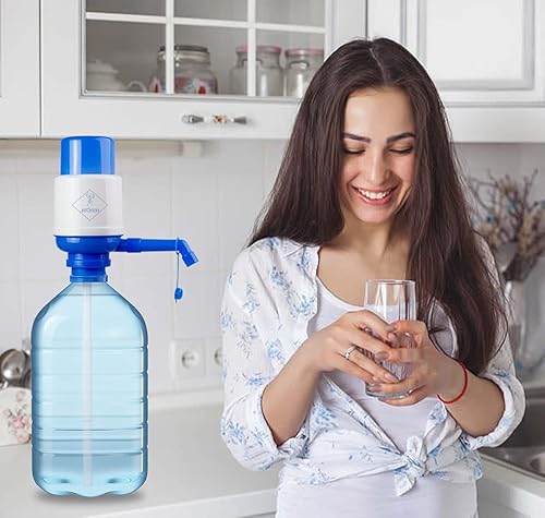 Distributeur d'eau pour carafes, pompe manuelle pour carafes, compatible avec bouteilles de 2,5, 3, 5, 6, 8, 10 litres avec bouchon diamètre 38 mm et 48 mm