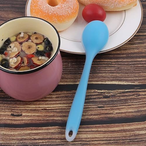 sourcing map Silicone Dîner Cuillère Table Cuillère Dessert Cuillère Ustensiles pour Cuisine Restaurant Bleu