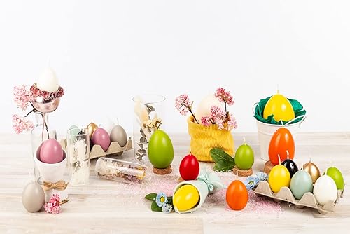 INNA-Glas - Bougies œufs de Pâques LEONITA, 6 pièces, Vieux Rose-Gris-Menthe, 6cm, 4,5cm, 7h - Made in Germany