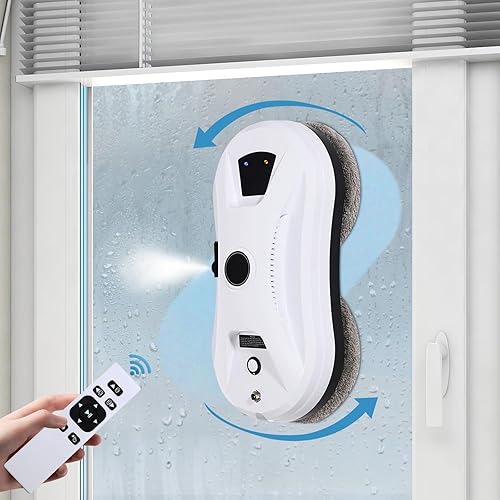 QUIOTUIR Robot Nettoyeur Vitre Robot Lave Vitre 2800pa Laveur de Vitre Automatique Télécommande Navigation Intelligente avec 10 Tampons Nettoyage pour Nettoyage Vitres Encadrées Maisons, Bureaux