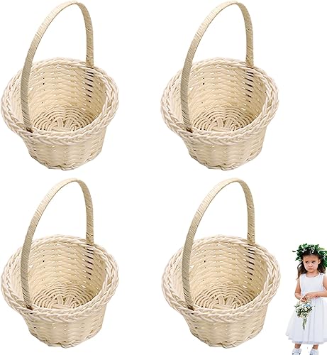 4 * Panier De Fleurs De Mariage, Petits Paniers De Fleurs Avec Poignée, Corbeilles De Mariage Tressées En Rotin, Petites Corbeilles Osier Avec Anse, Ensemble De Paniers De Demoiselle D'honneur