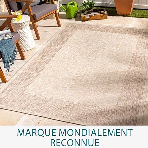 Surya Livabliss Zante Tapis Exterieur Terrasse Balcon, Véranda, Patio - Moderne Abstrait à Motifs Marbre Moucheté - Tapis Jardin Extérieur et Intérieur Boheme Chic Oriental 160x213 cm - Beige, Bleu