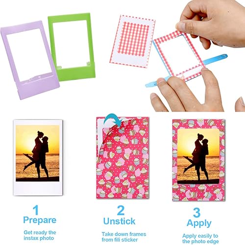 HoaaiGo 86 Pcs Appareil Photo Instantané Accessoires, 60 Cadres Autocollants, 10 Cadres Photo en Papier, 10 Clips Suspension, 5 Cadre Photo Table Plastique Colorés et 1 Microfibre, pour Mini 9 8 8+