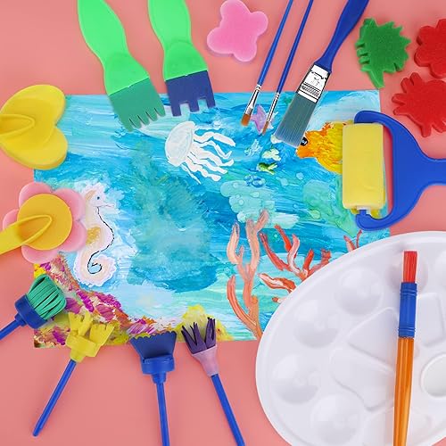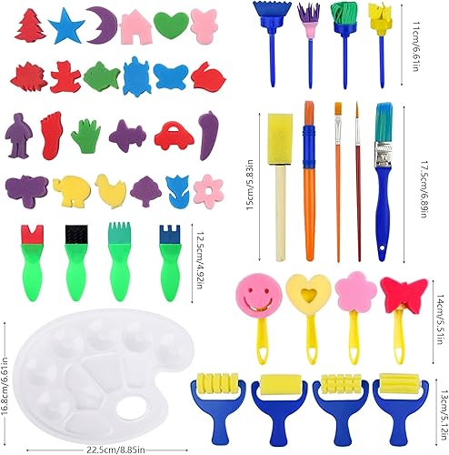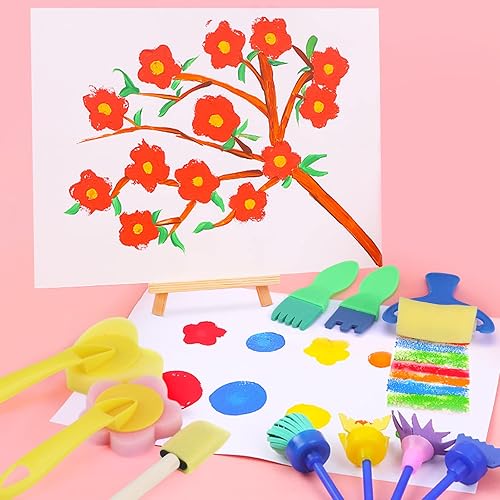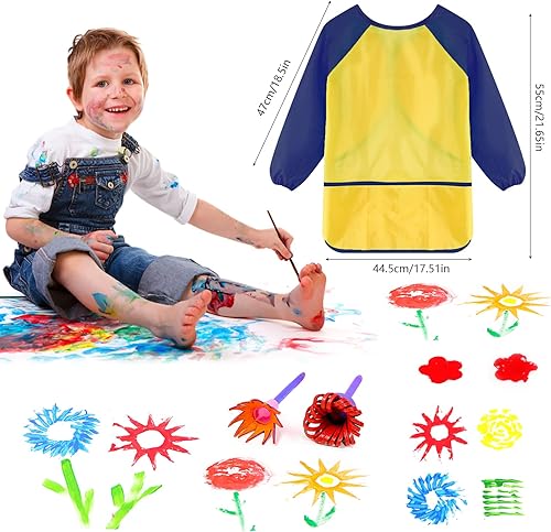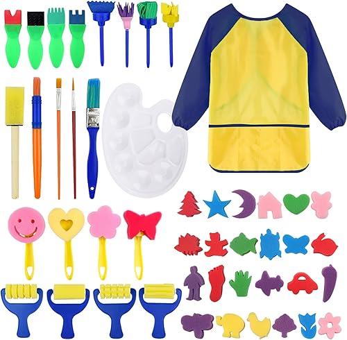 47 Pièces Kit Pinceaux Peinture Enfant éponge Bricolage d'art Et D'artisanat avec Tablier Imperméable Pinceau d'art
