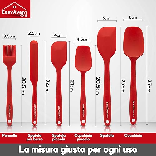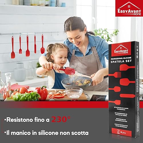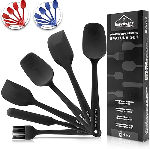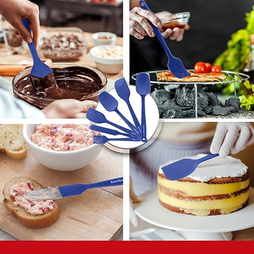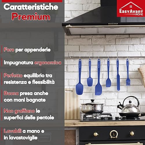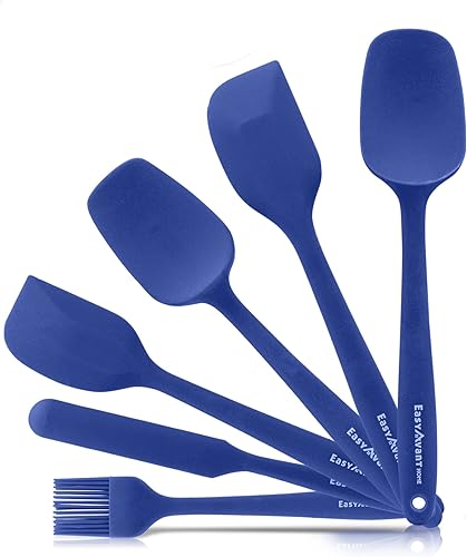 Spatule en silicone pour cuisine et pâtes, 6 pièces - Set d'ustensiles de cuisine résistants à la chaleur - Ustensiles de cuisine anti-rayures avec âme en acier certifiés LFGB d'Easyavant (Bleu)