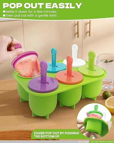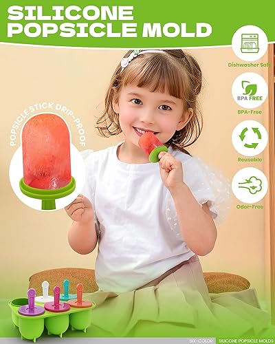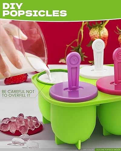 Moules à Glace en Silicone, Réutilisable Moule Glace Silicone Sans BPA, en 6 Tige en Plastique Colorés
