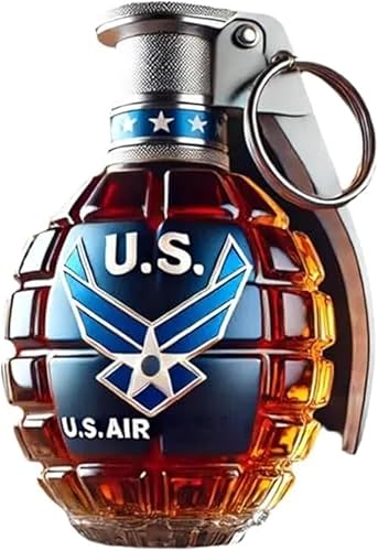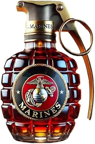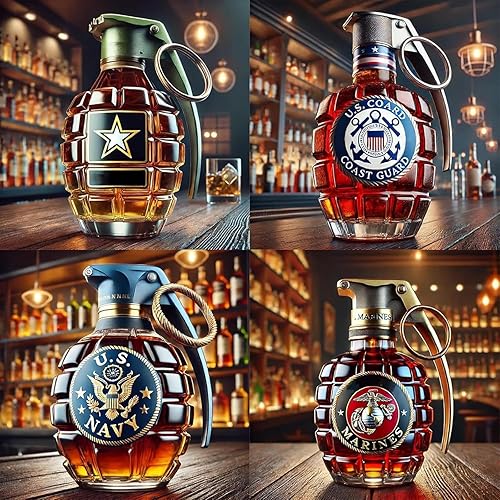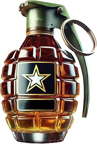 Bouteille de whisky militaire en forme de grenade à la main, bouteille en verre gravée en forme de grenade à main, étanche et durable, design militaire pour le jour du souvenir (D)