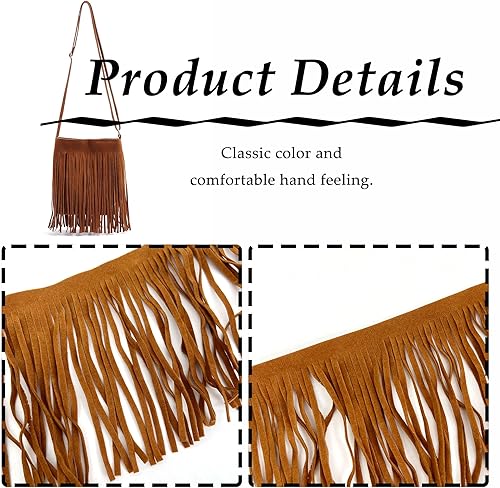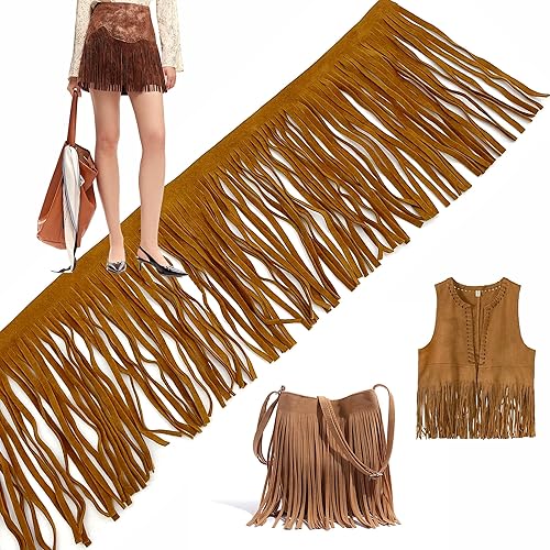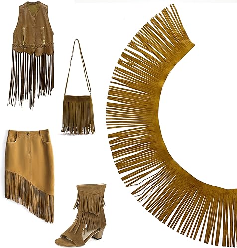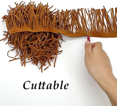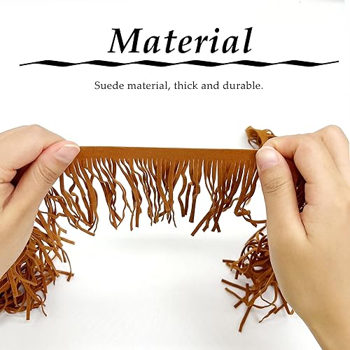 OHYER 2 mètres de long (x 10cm de diamètre) Ruban à franges en daim synthétique Suede Fringe Ribbon Sewing Accessories for Clothes Ruban à franges en daim synthétique Pompons Franges (Marron)