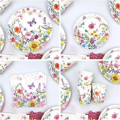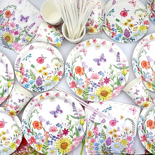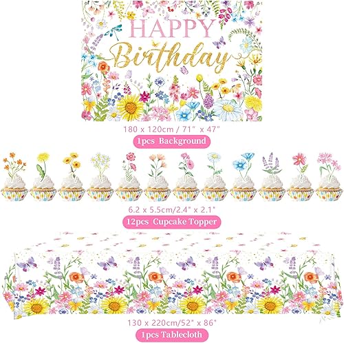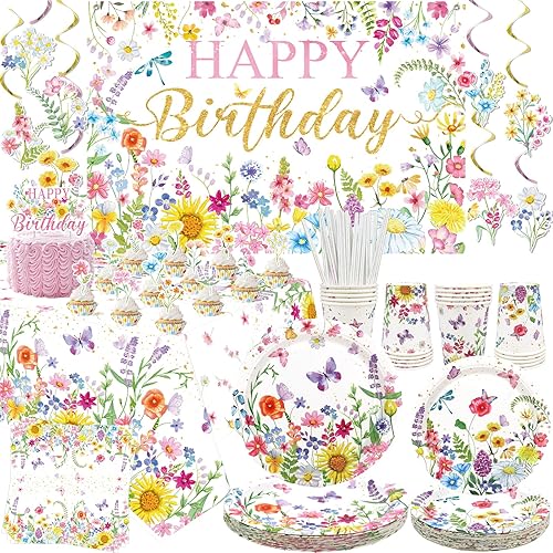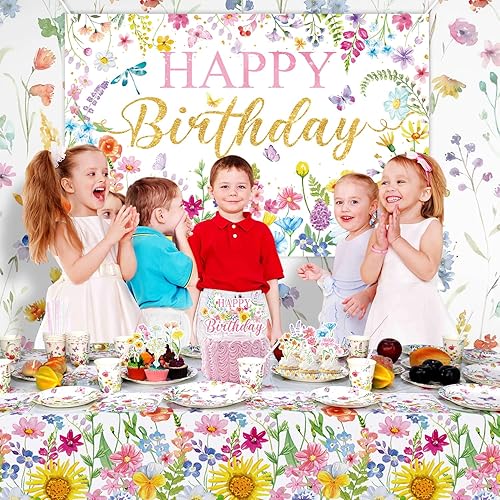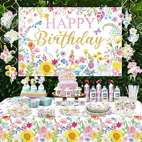 Décorations d'anniversaire florales pour fête d'anniversaire, assiettes, tasses, serviettes, nappe, toile de fond « Happy Birthday », tourbillons à suspendre pour le printemps, l'été, les