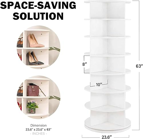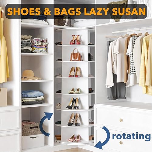 WUDLEP Étagère à chaussures rotative à 7 niveaux - Étagère à chaussures rotative à 360 degrés - Carrousel rond - Sac à main vertical - Blanc