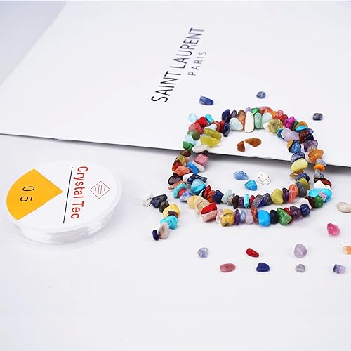 Zythrem 400 Pièces Perles Pour Bracelet 5-8mm Kit Bracelet Perle + 1 Rouleau de fil élastique de 0,8 mm Collier Perle Naturelle Perle Pierre perles Plates Pour Bracelet