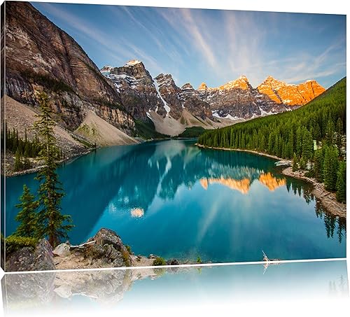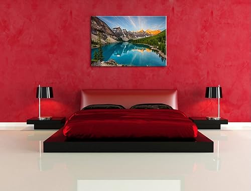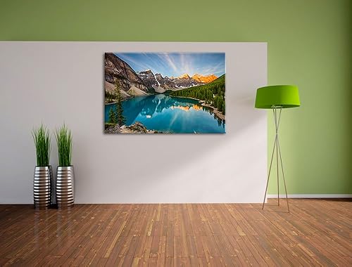 Pixxprint Peinture Lac de Montagne sur Toile, Format XXL Support en Bois, Leinwand Format:120x80 cm