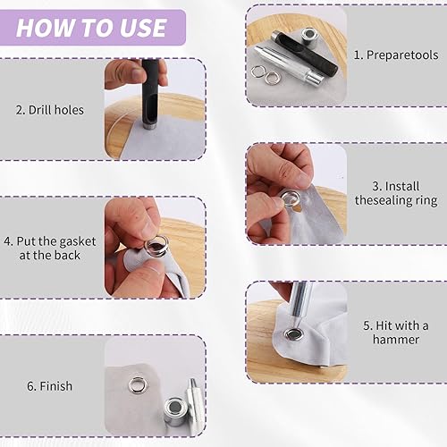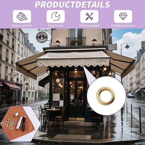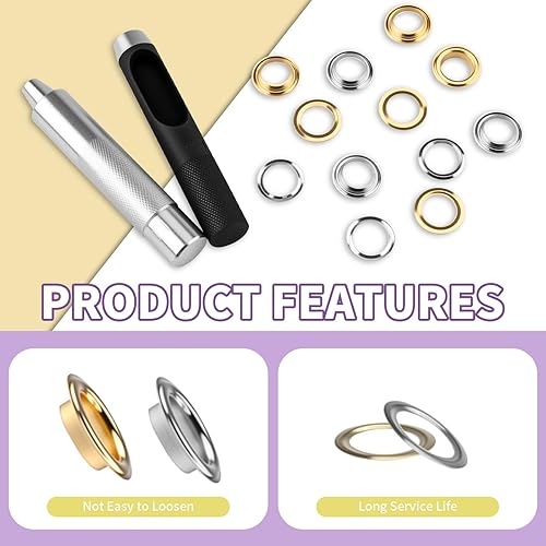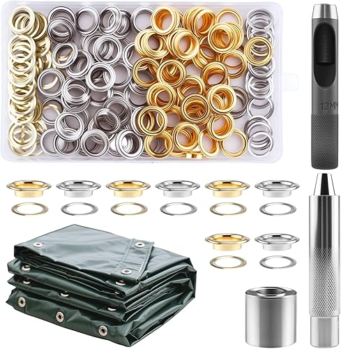 Foydream 120 Pcs Oeillets pour Baches 12mm, Kit Oeillet Couture Outils en Métal, Ensemble Pince a Oeillet et Rondelle pour Bâche, Toile, Chaussures, Vêtements, Noyaux de perles, Tissu, Cuir et Sac