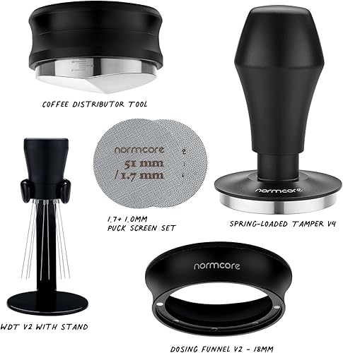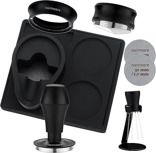 Normcore Kit de barista compact 7 en 1 de 51 mm : tamper à café, outil distributeur, WDT, entonnoir de dosage, écran de palette, support de tampage, support de porte-filtre, kit essentiel de barista