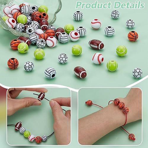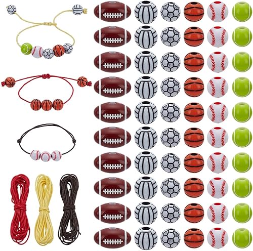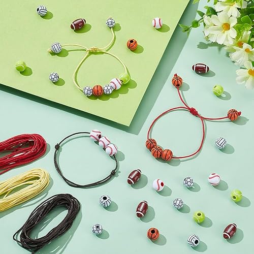 PH PandaHall Kit de Fabrication de Bracelets de Sport 60pcs perles de Sport avec 9 m et 1mm Cordons en Coton Ciré pour Bijoux Colliers Cadeaux de Fête Anniversaire