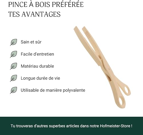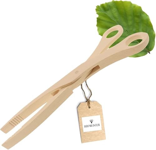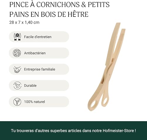 HOFMEISTER® Pince en bois de hêtre, résistante à la chaleur, prise sûre avec rainures, pince hygiénique pour choucroute et cornichons, pince pratique pour barbecue, 28 cm