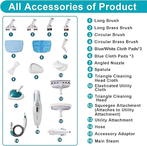 Stemoo 331641 Balai Vapeur Multifonction 19 en 1 Pour Balai à Vapeur Vertical et Portable, Nettoyeur Baliai Vapeur