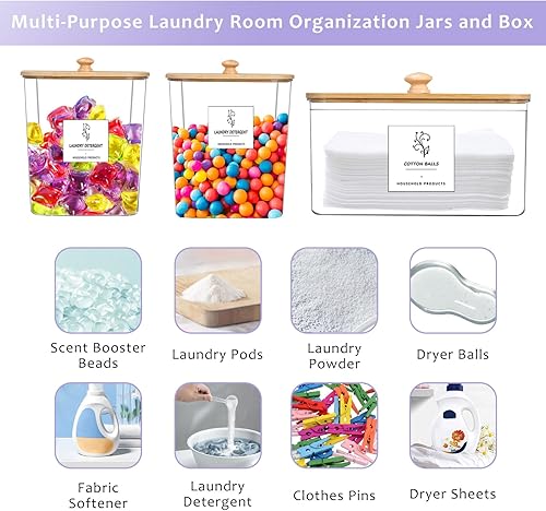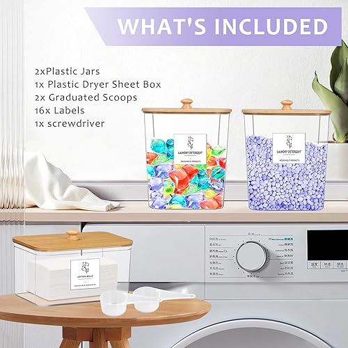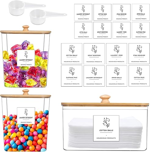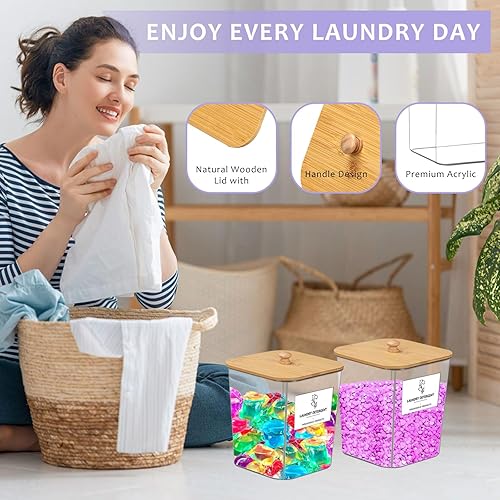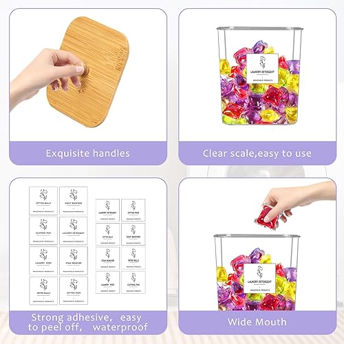 Lot de 3 boîtes de rangement,Boîte À Détergent de Couvercle en Bambou,Stockage de Poudre À Lessive Grande Capacité avec 16 Étiquettes et 2 Cuillères,Boite Lessive pourCapsules de Lessive,Bombe de Bain