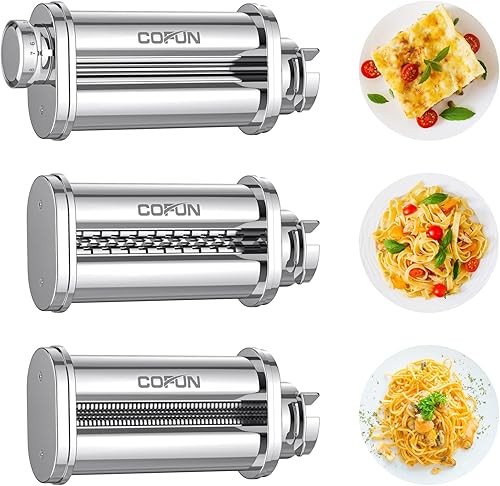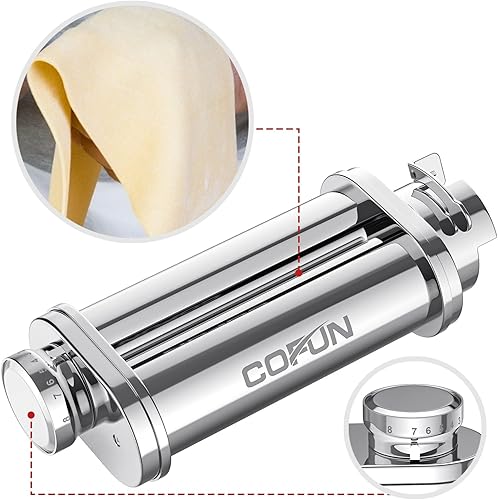 Accessoires Pâtes pour Bosch MUM2 MUM5 Robot Pâtissier, Rouleau à Pâtes en Acier Inoxydable, Coupe-Spaghetti, Coupe-fettuccine, COFUN Accessoires pour Machine à Pâtes pour Bosch Robot Pâtissier
