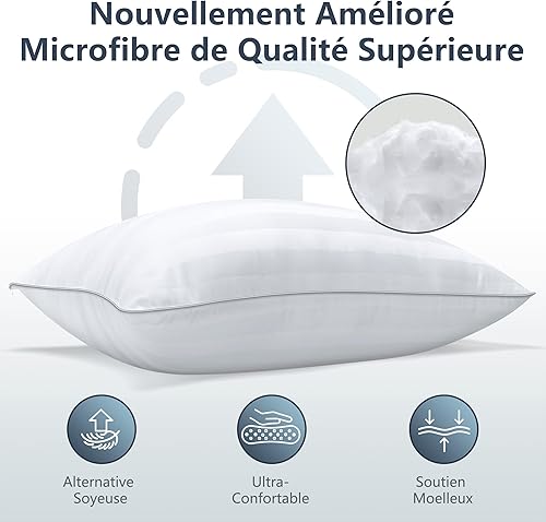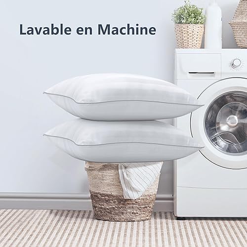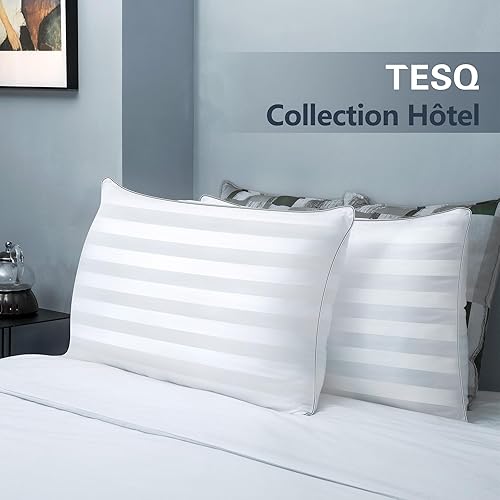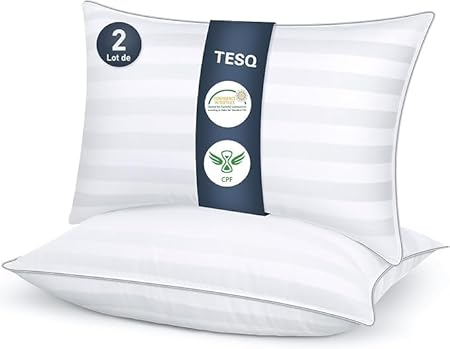 TESQ Oreiller 60x60 cm avec 900g de Remplissage, Lot de 2 Oreillers Confortables et Respirants, Idéal pour Dormeurs sur Le Côté, Le Dos et Le Ventre, Qualité Hôtelière, Lavable