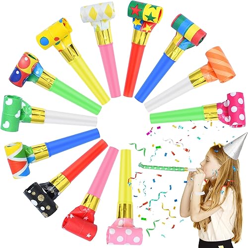 DIELOVEHUA 24 Pièces Sifflet Anniversaire Enfant, Sifflet de Couleur, Souffleur de Fête Multicolore, pour Anniversaires Célébration Mariages Occasions de Festival Couleur Aléatoire