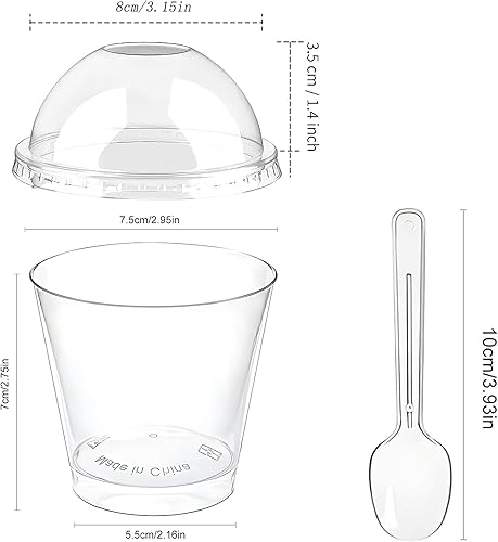 Goomp 50 Pièces Tasses à Dessert, Tasses à Dessert avec Couvercle Verrines Plastiques DIY Coupe à Dessert Plastique pour Pudding, Mousse,Crème Glacée,Gobelets à Dessert Carrés pour Anniversaire