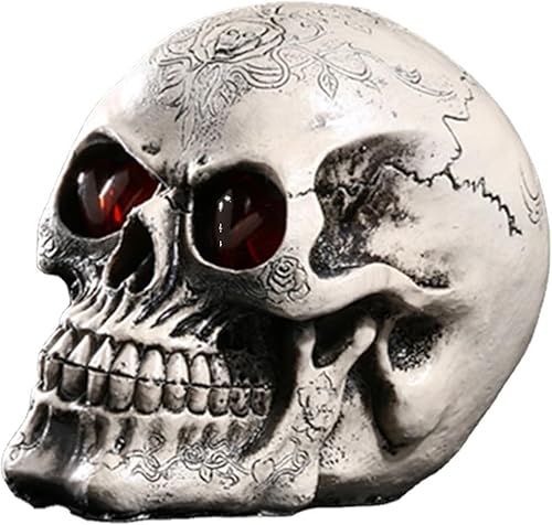 Tuzsocr Lampe LED en forme de tête de mort, ornement de crâne léger, décoration d'Halloween, modèle de tête de mort en résine, avec yeux lumineux LED, pour maison, bar, fête, décoration gothique