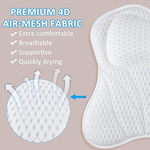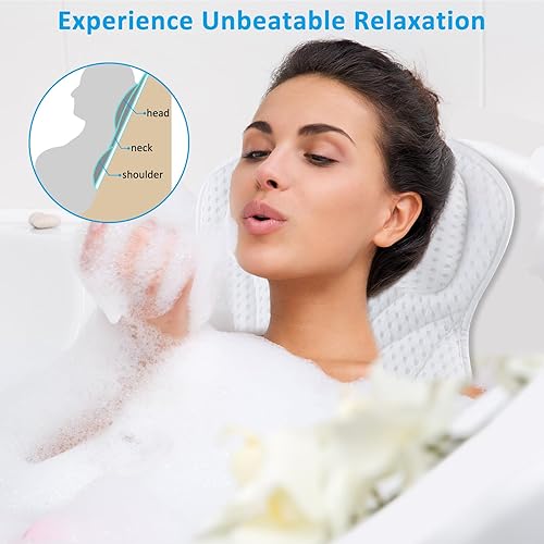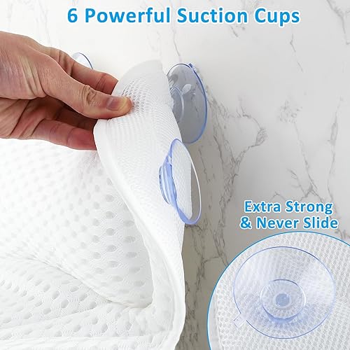 Coussin Baignoire, DoDuo Oreiller de Bain 4d Air-Mesh Coussin de Bain avec 6 Ventouses Accessoires de Bain Coussin de Spa Coussin de Soutien Baignoire pour Dos et Cou Blanc