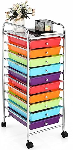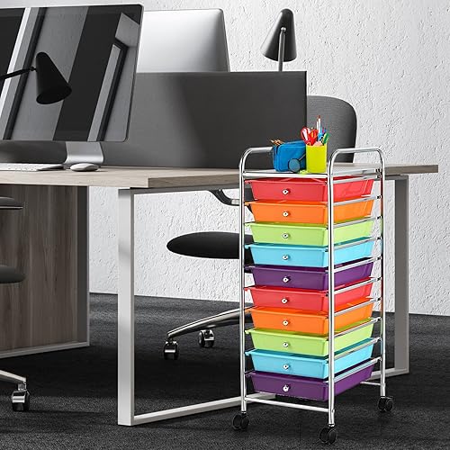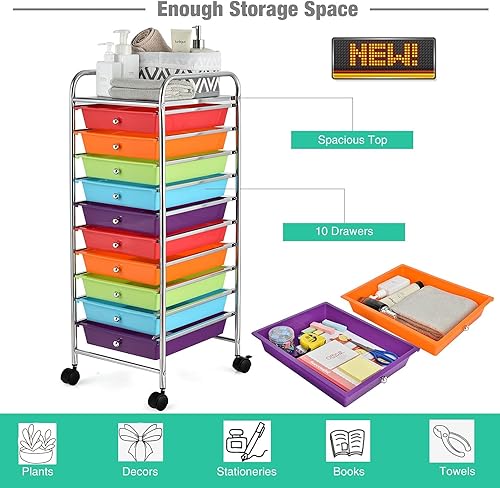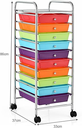 GIANTEX Chariot de Rangement à 10 Tiroirs, Tour de Rangement Multifonction pour la Maison avec 4 Roues (Deux Freins), pour Chambre, Bureau, Salon, 33 x 37 x 86 cm (Multicolore)