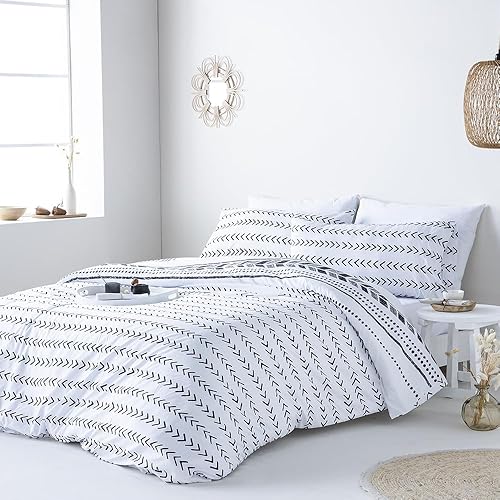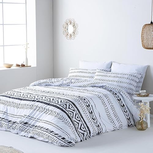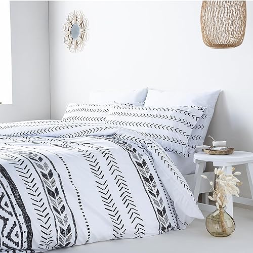 COTTON ARTean Housse de couette réversible ESVA grise pour lit de 135 cm, fermeture à boutons hypoallergénique